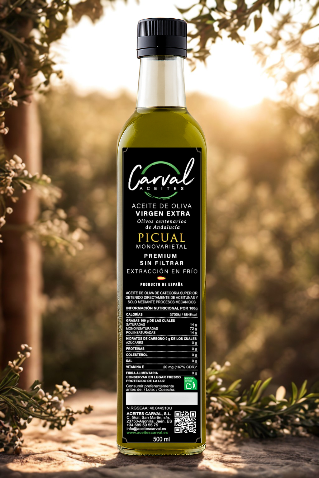 Se trata de un aceite de olivos centenarios en cultivo tradicional en la campiña de Jaen. Todos son picual, la variedad que produce el mejor aceite del mundo. Fresco, verde, muy aromático, con excelente sabor, ligeros toques de picor de fondo pero agradables. Un placer para los sentidos.